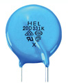 壓敏電阻是半導體元件。當施加在壓敏電阻兩端的電壓從0至U1mA(壓敏電壓)時,流經壓敏電阻的電流≤1mA,壓敏電阻阻值較大,我們可以認為在這一段壓敏是“絕緣體”;當瞬間脈沖高壓入侵時,脈沖電壓峰值超過壓敏電壓,壓敏電阻阻值迅速變小,動作反應時間小于20*10-9秒,壓敏“瞬間”變?yōu)椤皩w”。例如:當壓敏兩端脈沖電壓峰值是壓敏電壓U1mA的2倍時,壓敏的電阻值通常小于1Ω,它完全是導體了。